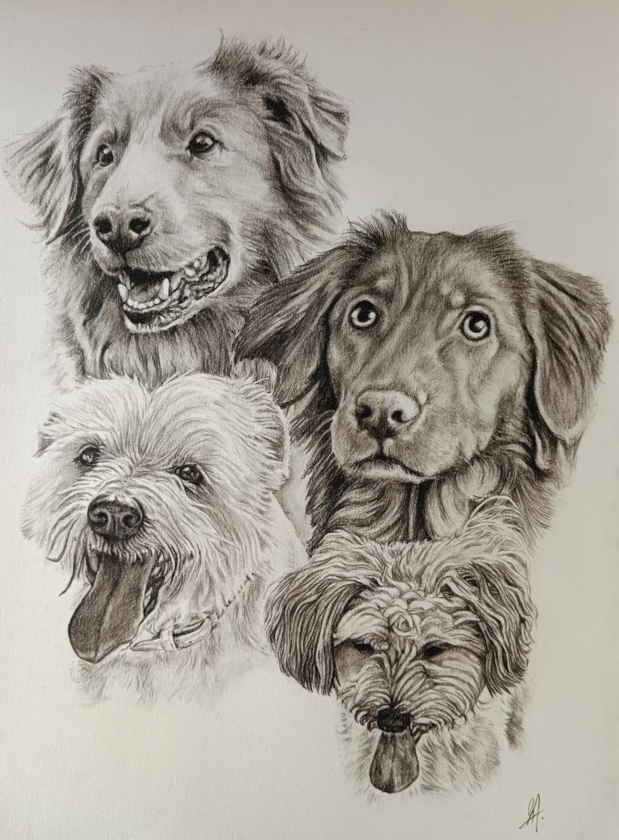 I've spent most of my working life in other careers, but art was always something I hoped to come back to. Over the last few years, I've been taking on commissions for pet and portrait drawings. Starting in graphite and charcoal, I quickly moved on to coloured pencils and then pastels.